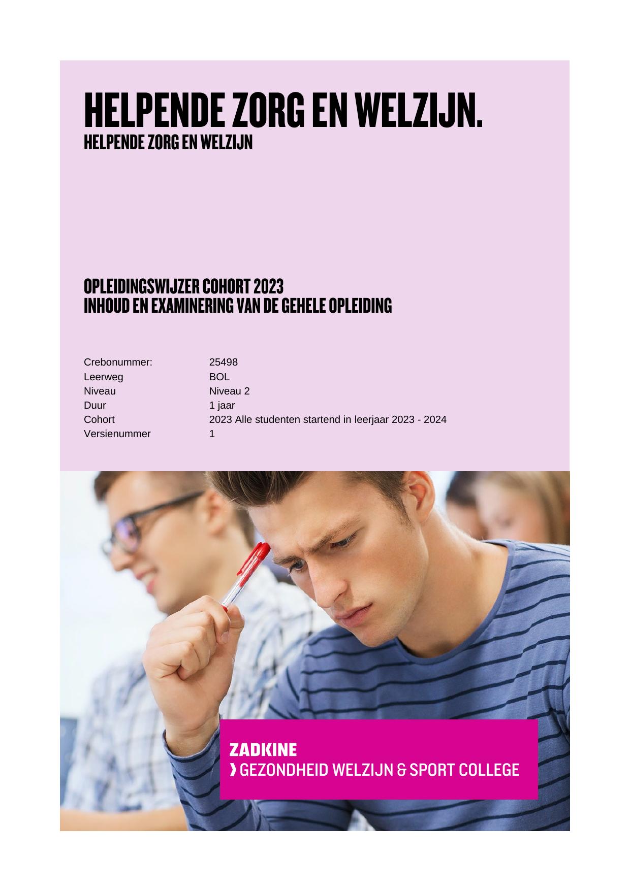 Helpende Zorg en Welzijn 25498BOLVSNBHP in cohort 2023-2024