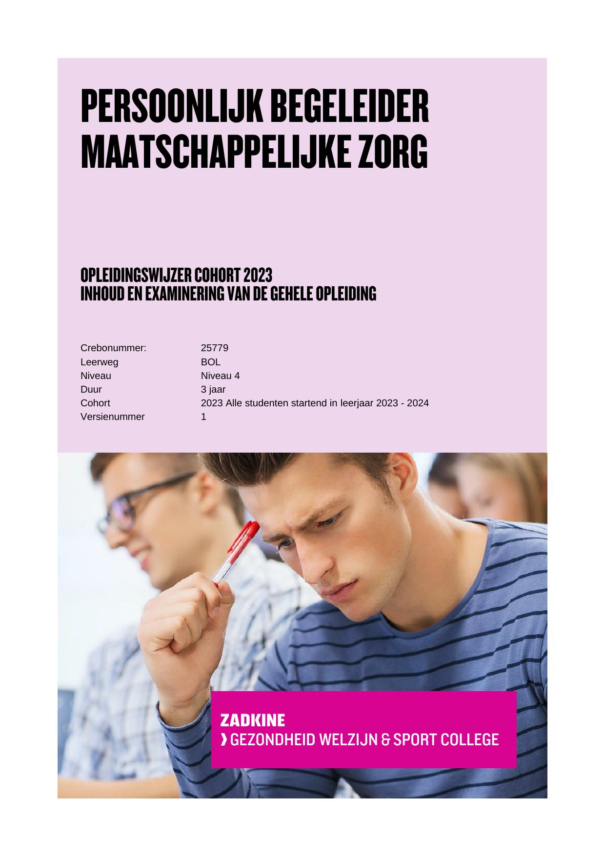 Persoonlijk begeleider maatschappelijke zorg 25779BOL in cohort 2023-2024