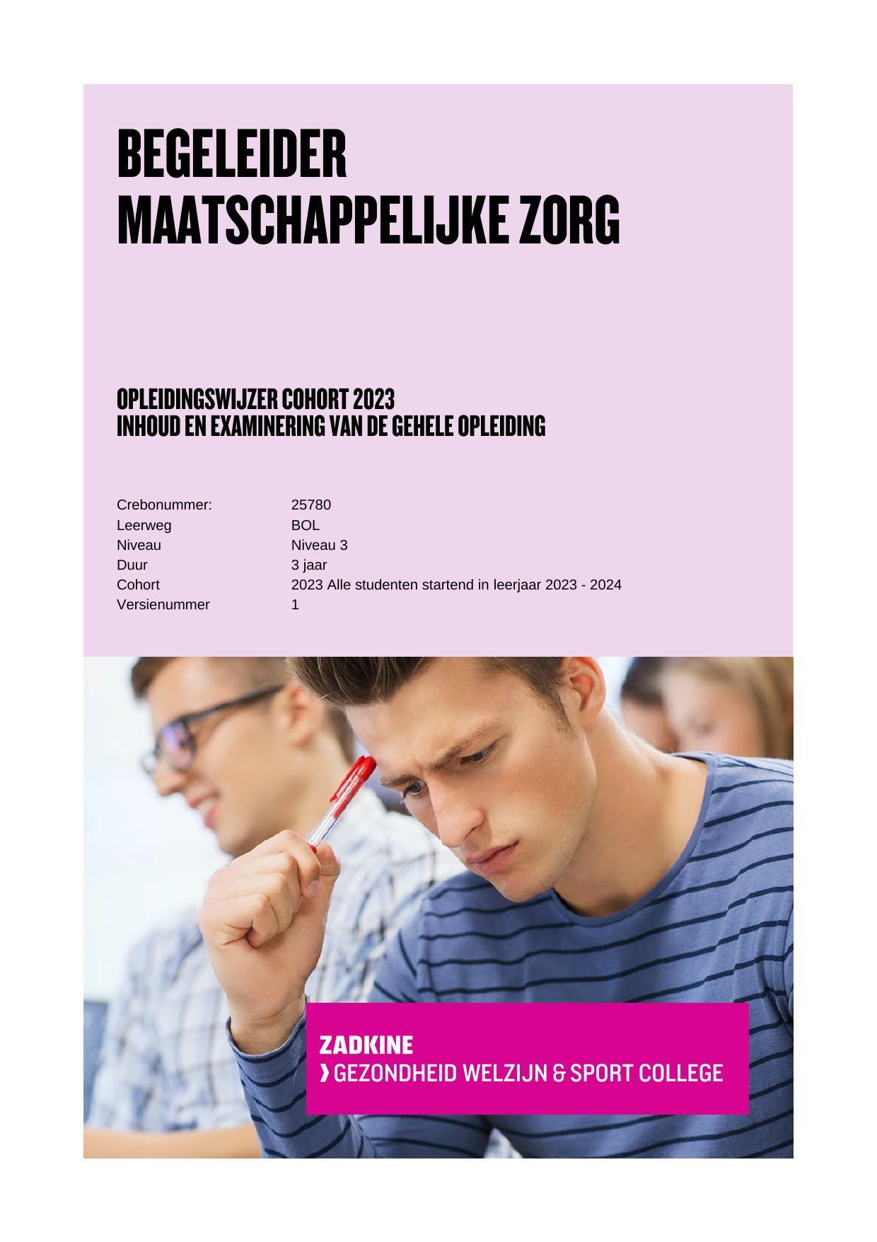 Begeleider maatschappelijke zorg 25780BOL in cohort 2023-2024