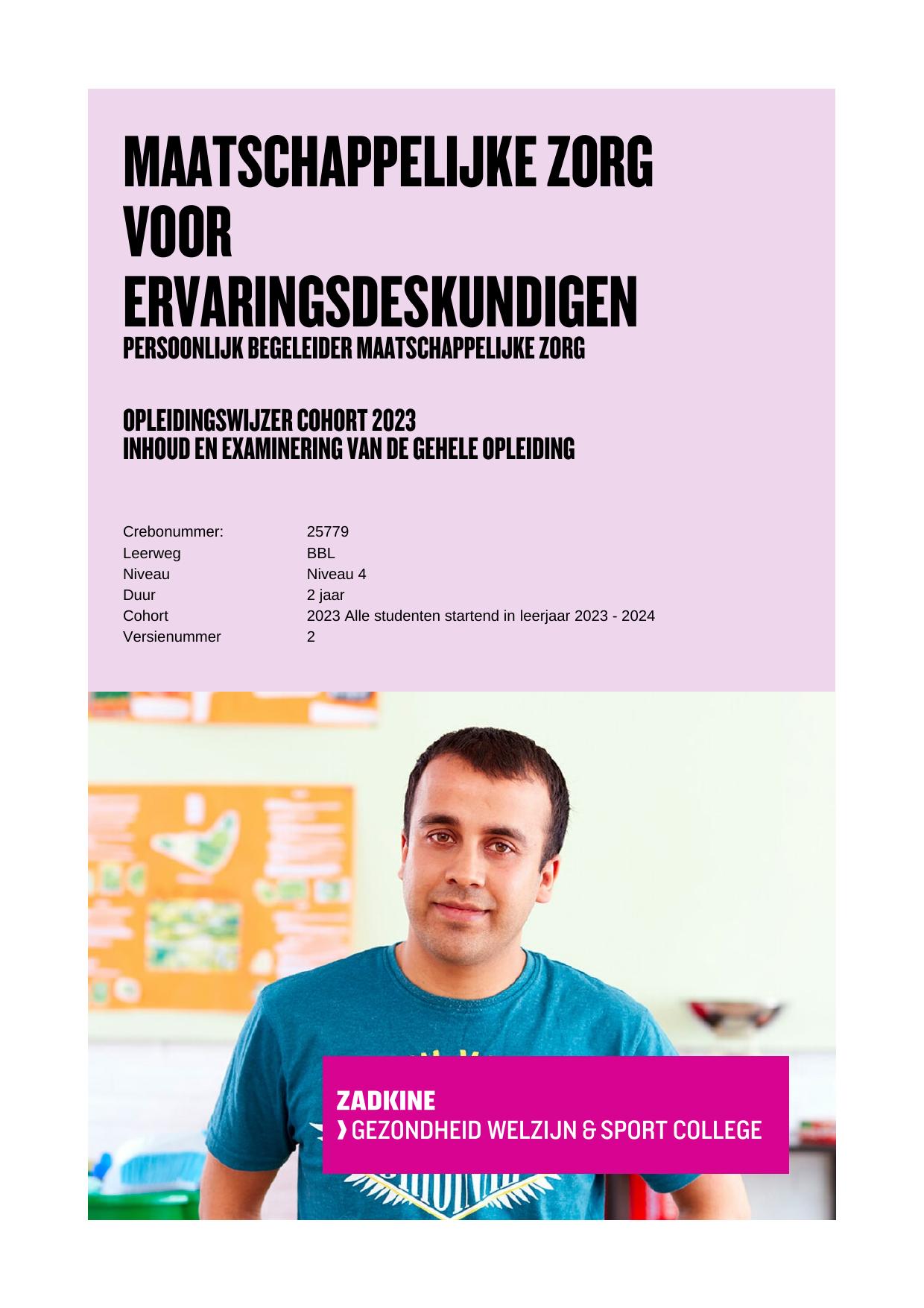 Persoonlijk begeleider maatschappelijke zorg 25779BGEBBL in cohort 2023-2024